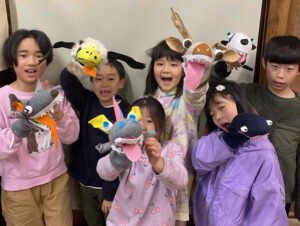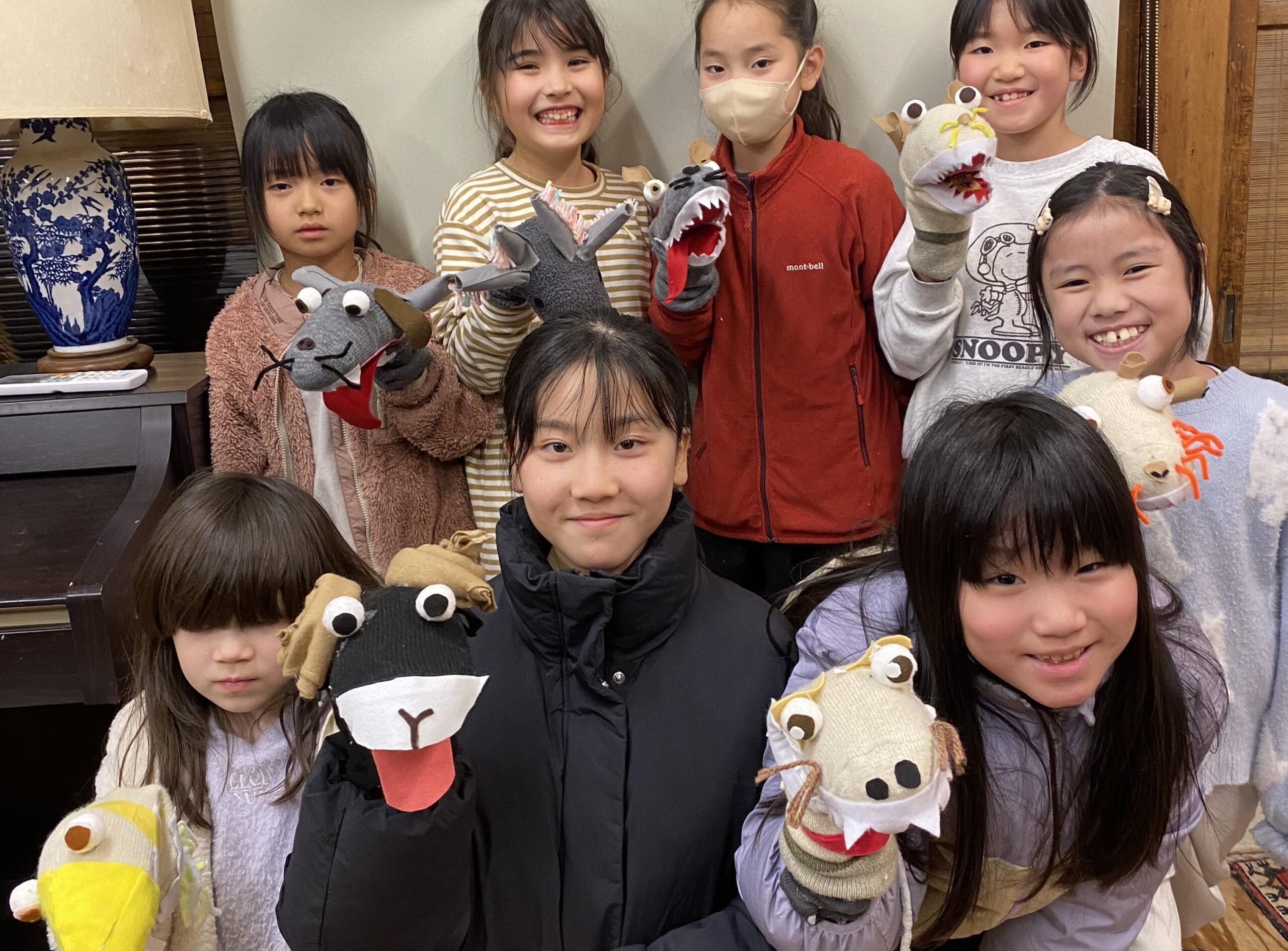 小学生クラスで、靴下を使ったマペット人形を制作!